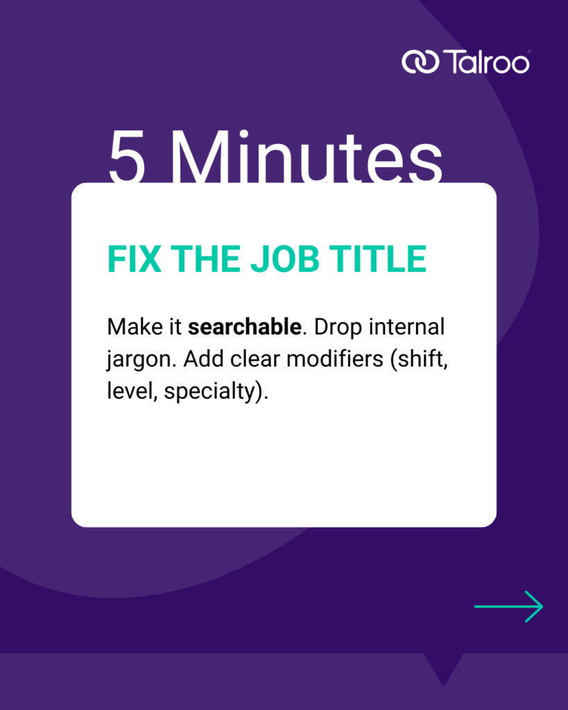- Ensure it reflects how candidates actually search for the role.