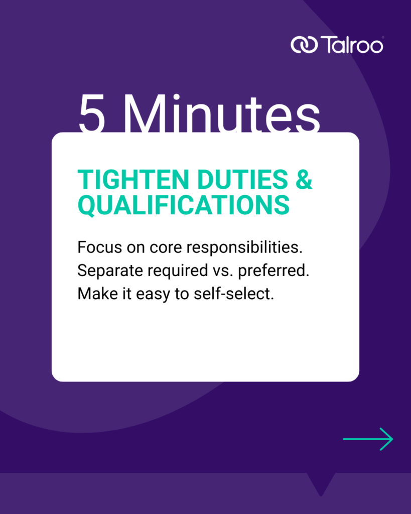 - Clearly distinguish between required and preferred qualifications to avoid deterring candidates.
